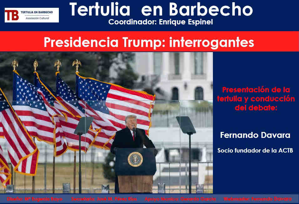 En esta tertulia/debate se tratarán aspectos de especial importancia como la protección del mercado interior, la regulación de los aranceles aduaneros, inmigración, cambio climático o relaciones con Iberoamérica, China, Rusia o la Unión Europea sin olvidar temas de seguridad y defensa como la OTAN o los conflictos de Ucrania y Rusia o Israel-Gaza y el Líbano.